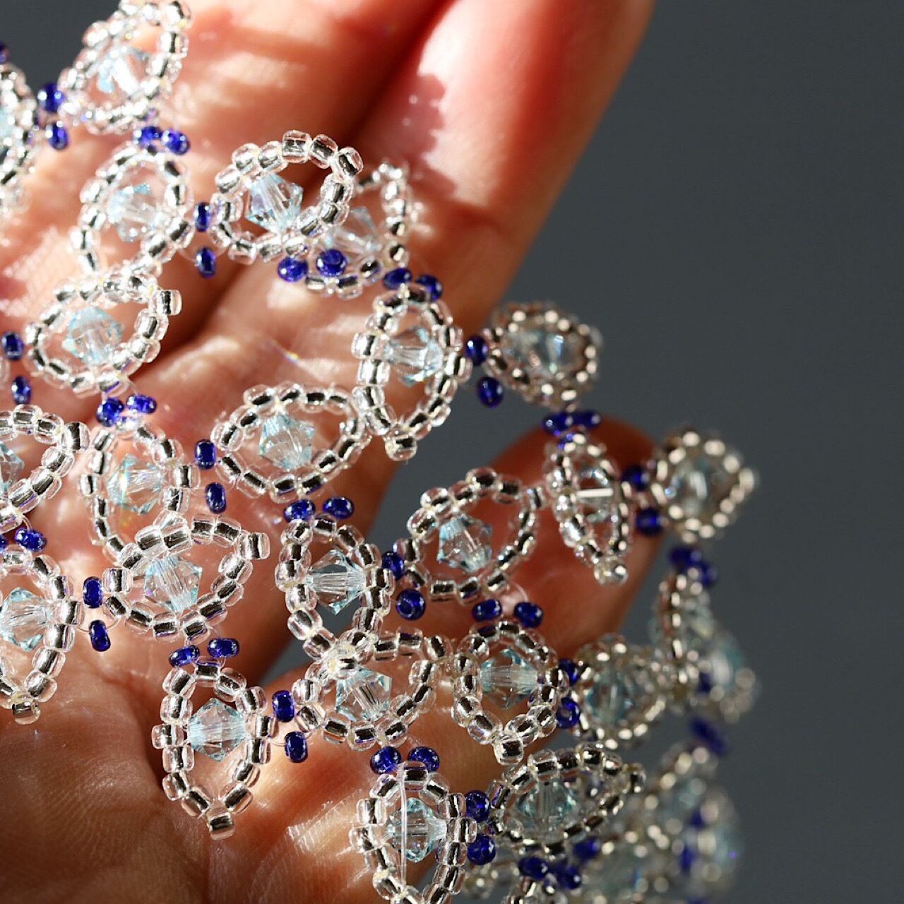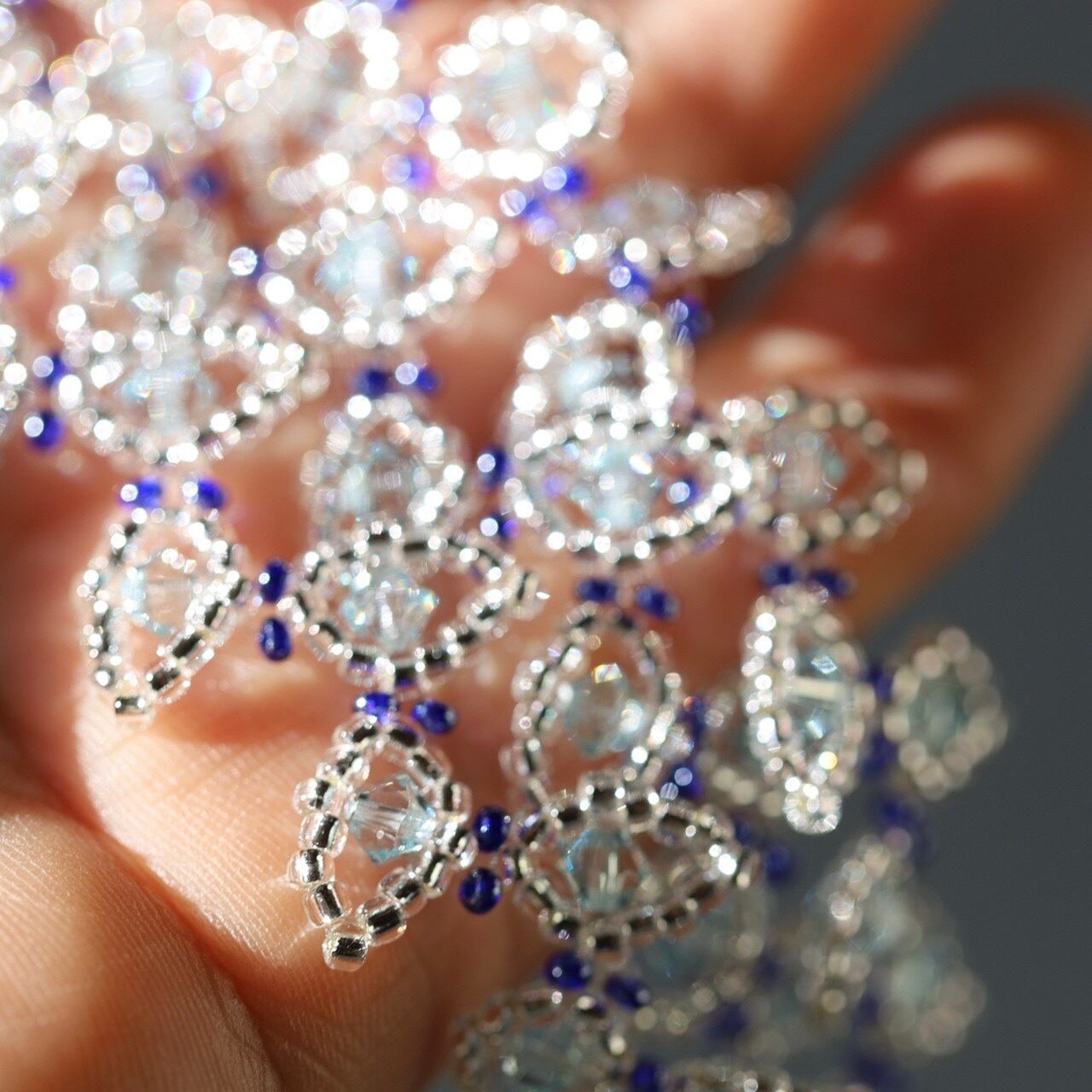Color:Silver(シルバー) サイズ:フリー 長さ 約18㎝ 素材:スワロフスキー、ガラスビーズ ※三連 ※金具(マグネット部分):Silver 留め具がマグネット式のため、簡単に着脱できます。 Goldに変更することもできます。ご購入前にお問い合わせください。 ※巾着袋に入れてお届けします。 ※お品物はアクセサリーのみです。 ※同デザインのネックレスがございます。