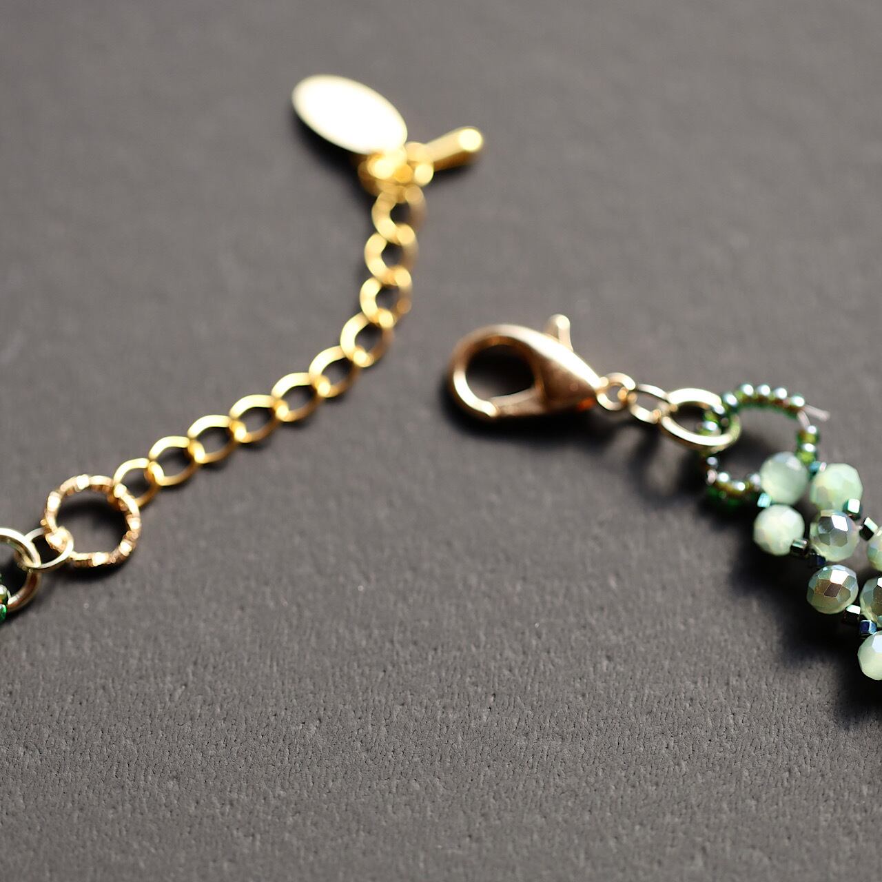 Color:Bright green(ブライトグリーン) サイズ:フリー 長さ 約36cm(+アジャスター5cm調整できます) 素材:ガラスビーズ ※金具はGold。 アジャスター式で5cmの長さが調整可能です。 ※巾着袋に入れてお届けします。 ※お品物はアクセサリーのみです。 ※同デザインのブレスレットがございます。 ※他のお色もございます(画像8枚目)。