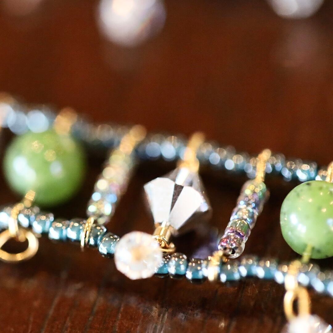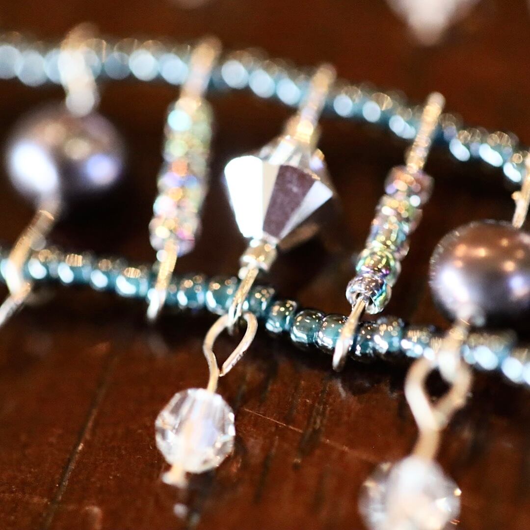 素材:スワロフスキー、天然石(ブルーキャッツアイ)、ガラスビーズ