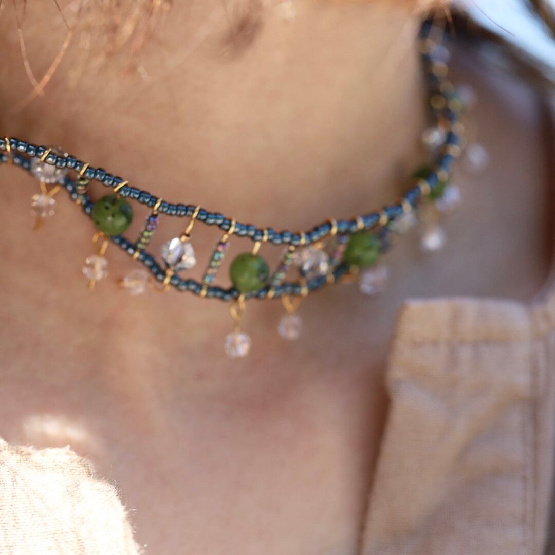 素材:スワロフスキー、天然石(翡翠)、ガラスビーズ